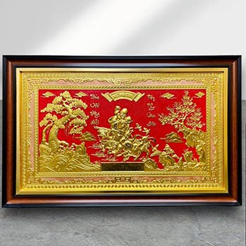 tranh đồng mừng thọ ông bà dát vàng