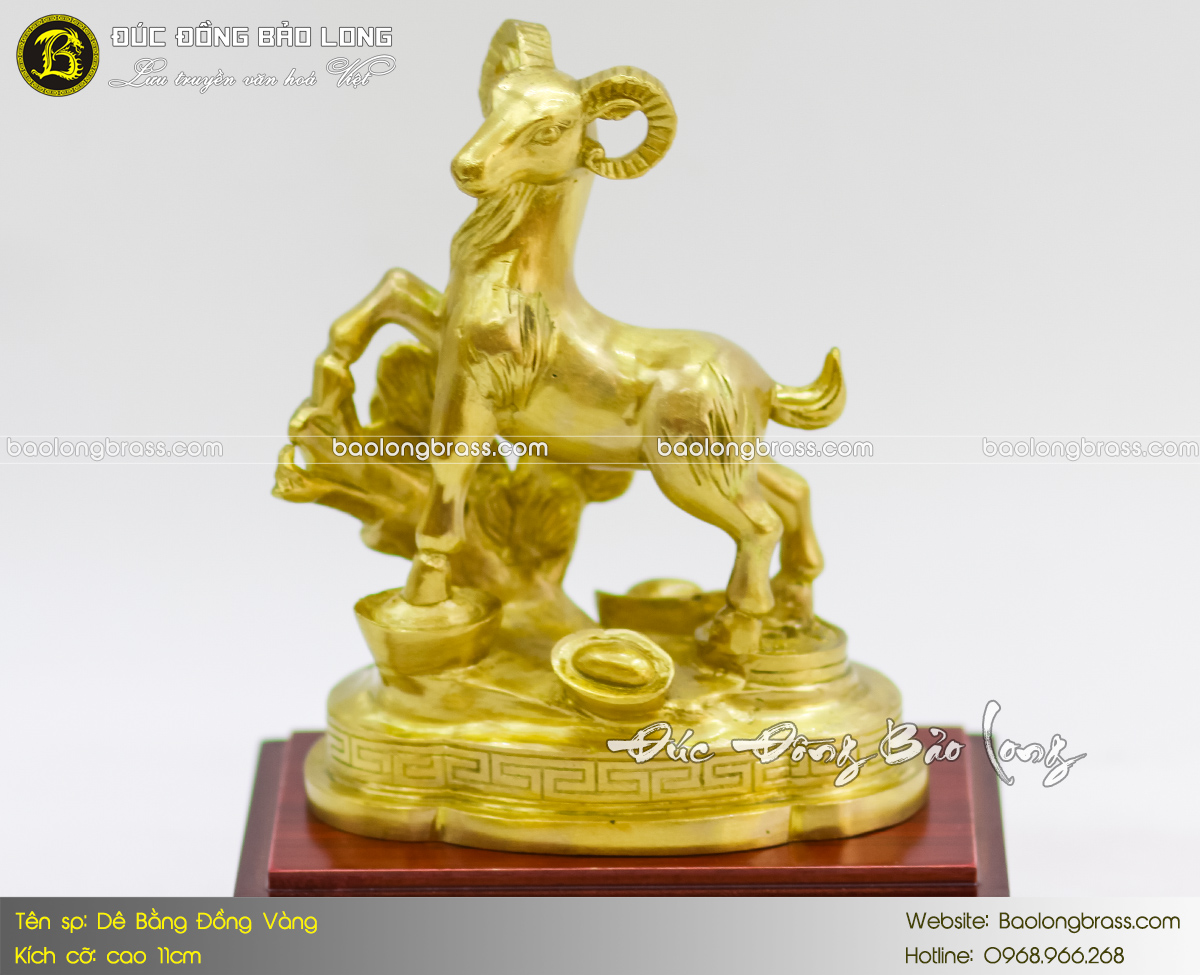 Quà Tặng Tượng Dê Bằng Đồng Vàng cỡ nhỏ nhỏ gọn cao 11cm, được đúc từ đồng vàng thanh khiết, bề mặt tinh xảo. Tượng dùng để trang trí hoặc làm quà tặng ý nghĩa cho người tuổi Mùi trong dịp đặc biệt.
