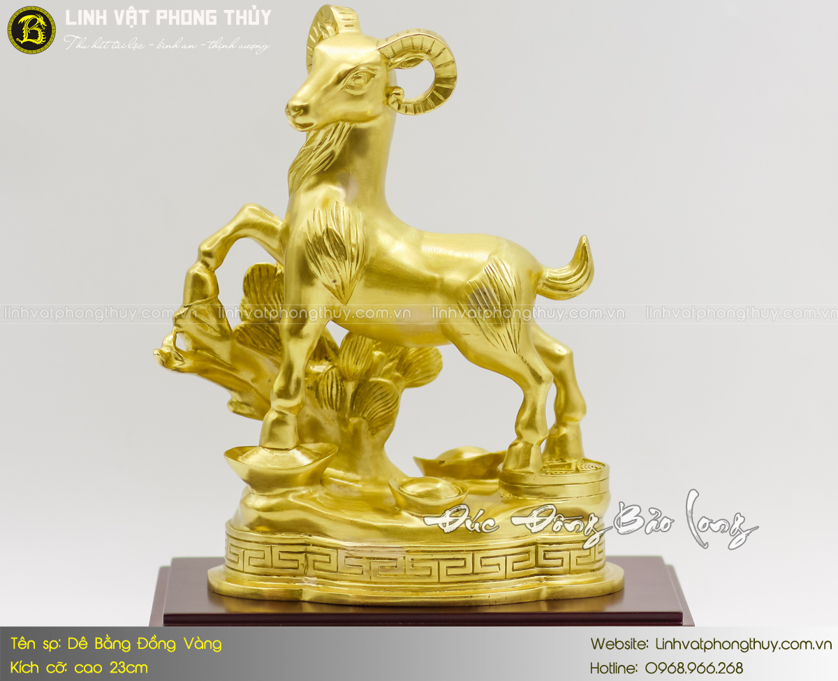 Quà Tặng Tượng Dê Bằng Đồng Vàng với kích cỡ cao 23cm, được đúc từ đồng vàng thanh khiết, thiết kế đẹp mắt. Tượng có mức giá ưu đãi, được dùng để trang trí hoặc làm quà tặng ý nghĩa cho người tuổi Mùi.