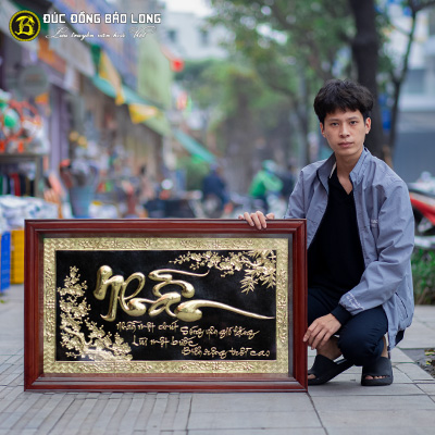 Bên cạnh đó, bề mặt tranh được tách bạch phần chữ nổi trên tấm nền đồng sơn đen giúp tăng tính thẩm mỹ và độ bền cho sản phẩm.