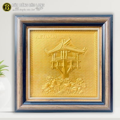 Tranh Chùa Một Cột bằng đồng khổ vuông 26cm là món quà lưu niệm đẹp, được nhiều quý khách hàng lựa chọn