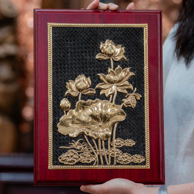 Tranh hoa sen để bàn bằng đồng mạ vàng 24k kt 23x30 được nhiều quý khách hàng lựa chọn