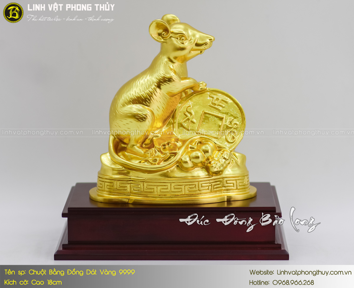Tượng Chuột Phong Thuỷ Bằng Đồng dát vàng 9999 có 2 kích cỡ cơ bản là cao 10cm và 18cm, đều là những kích cỡ phù hợp bày trang trí trong nhiều không gian. Đậy là món quà tặng trang trọng dành tặng những người tuổi Tý mừng các dịp đặc biệt rất ý nghĩa. Xem ngay!